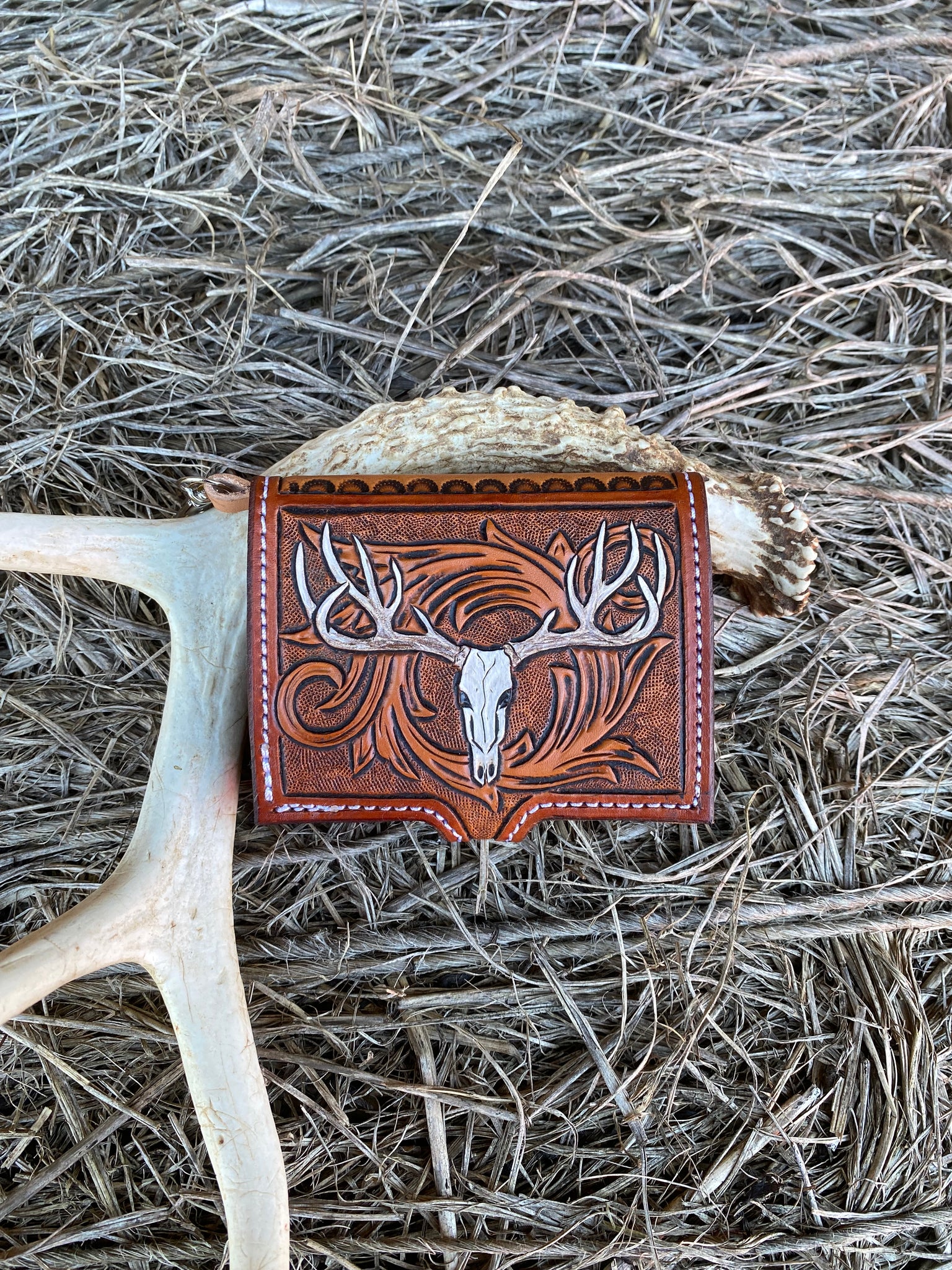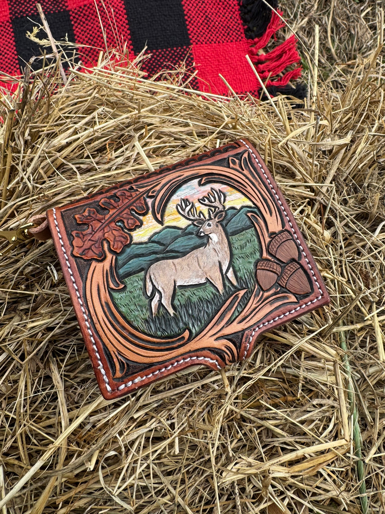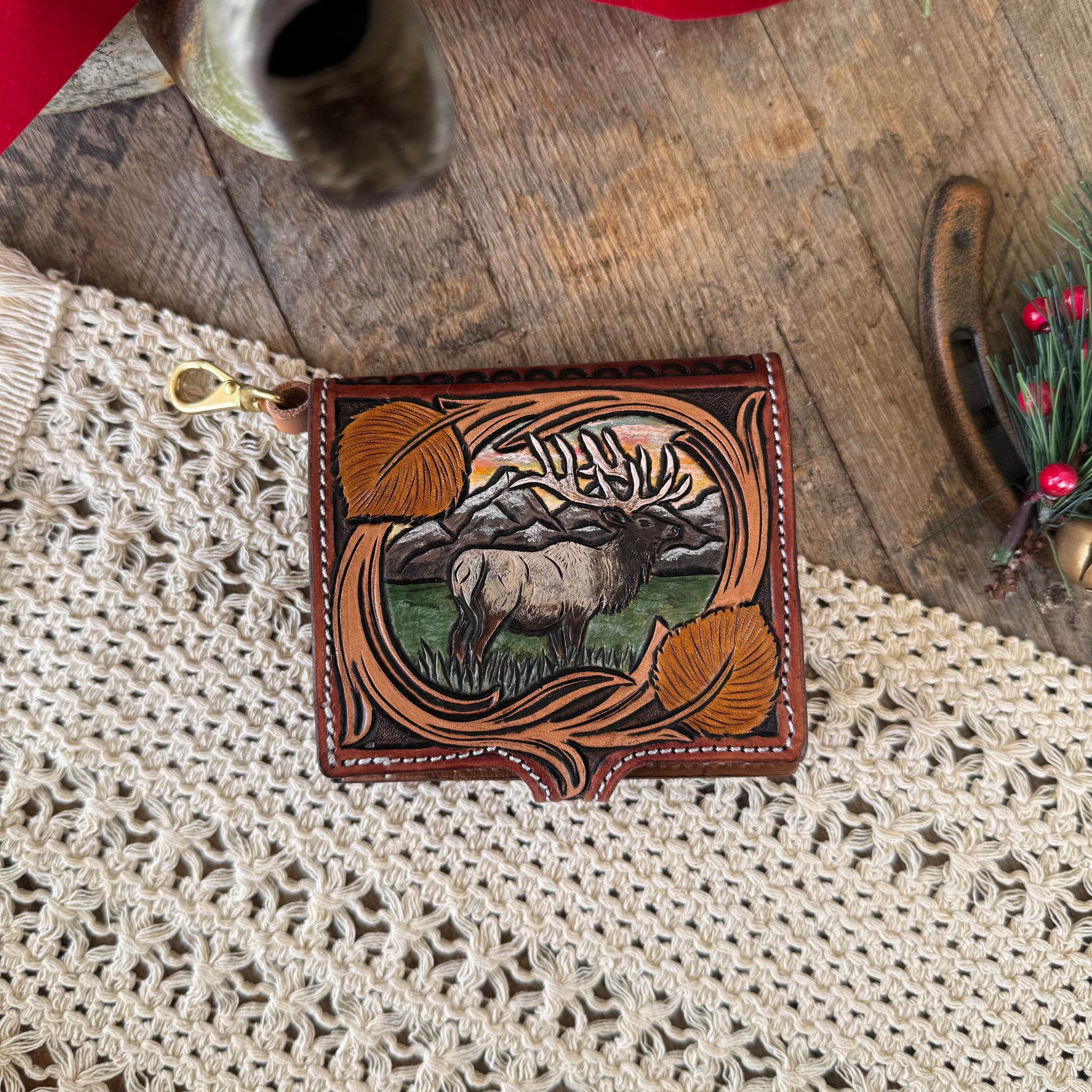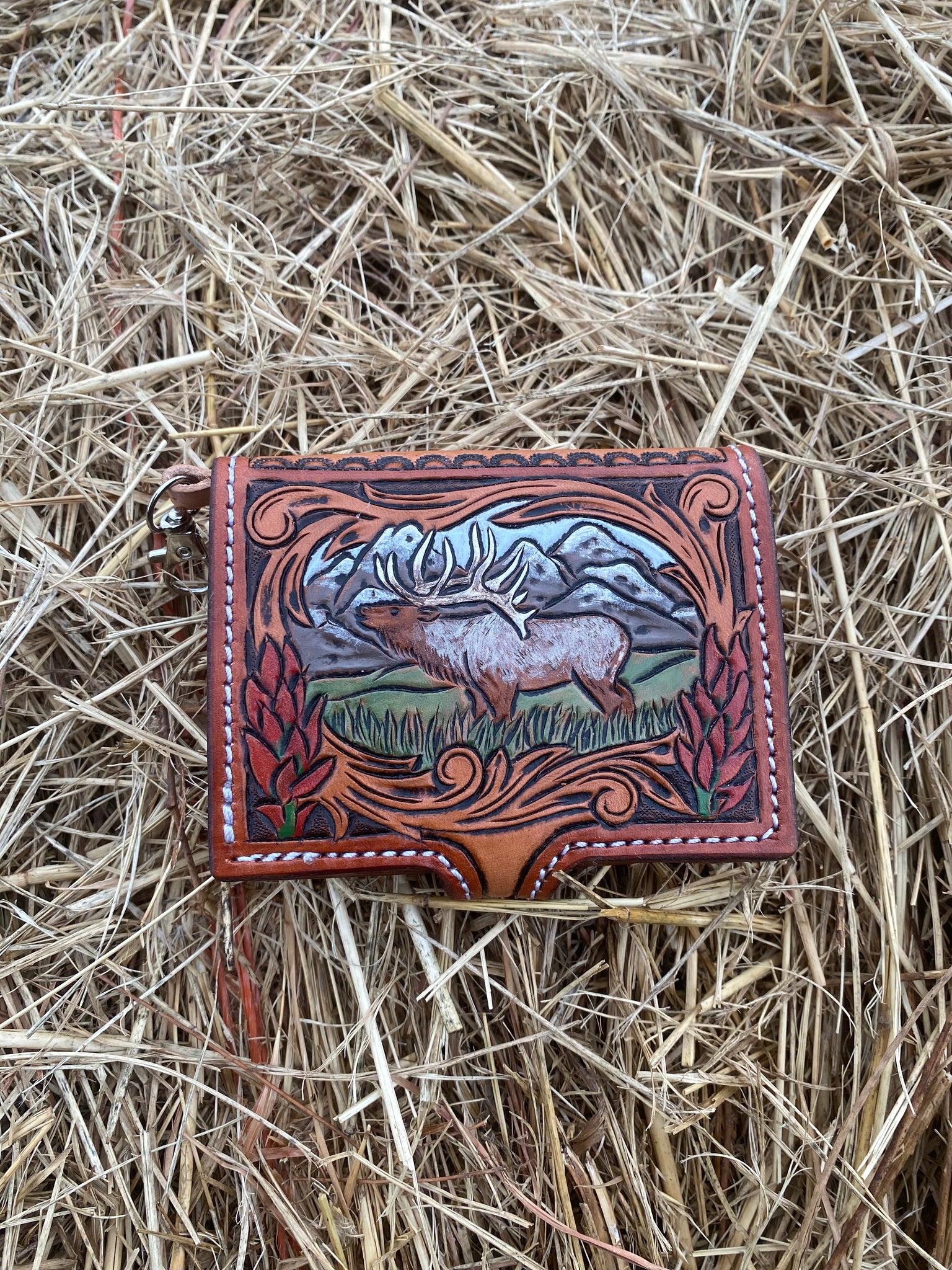 This is a DEPOSIT for a mini wallet. When you purchase this slot, send an email to mtnsidehide.customorders@gmail.com to discuss what you want and final price. Totals range from $300-$425 depending on details