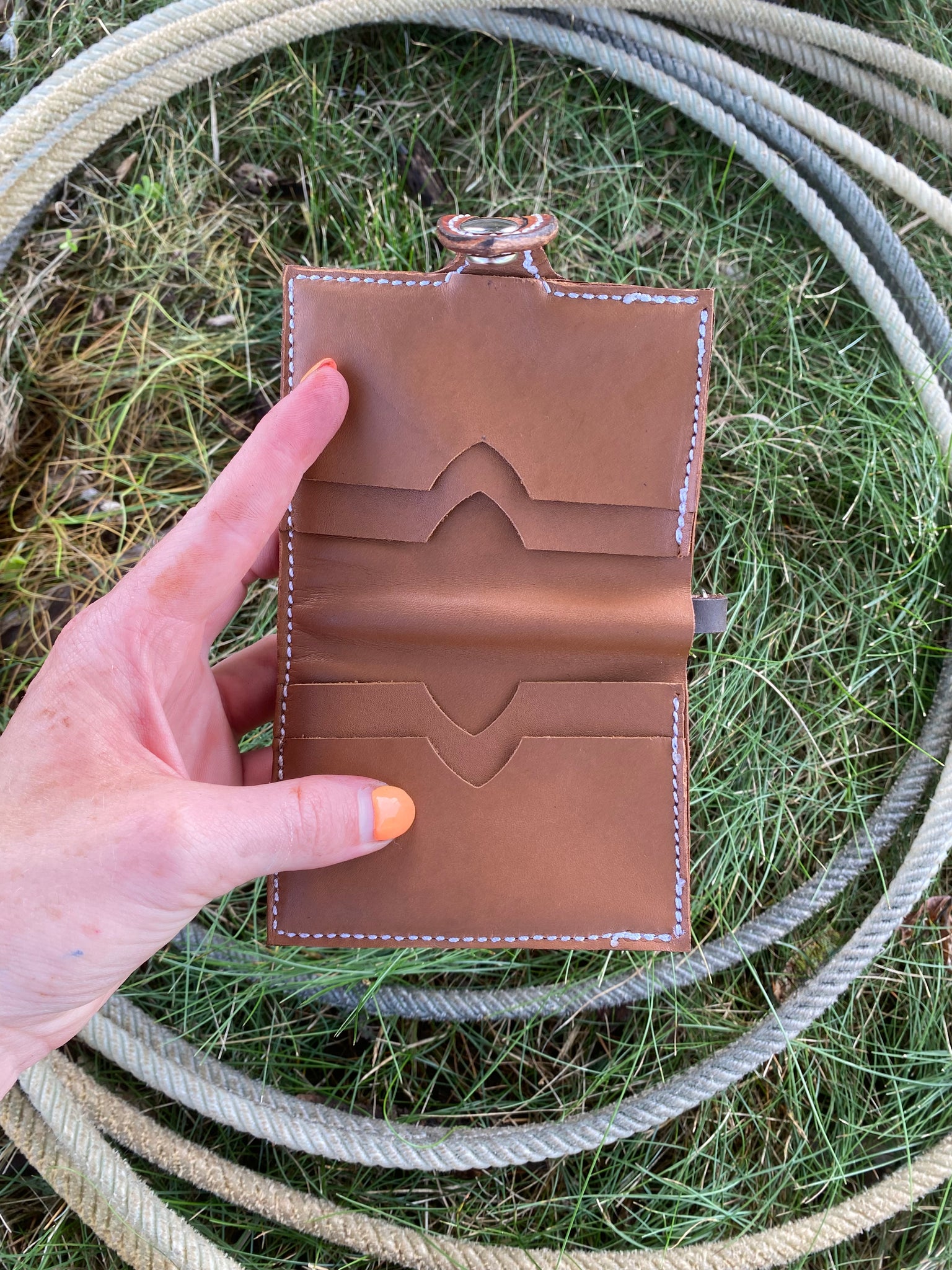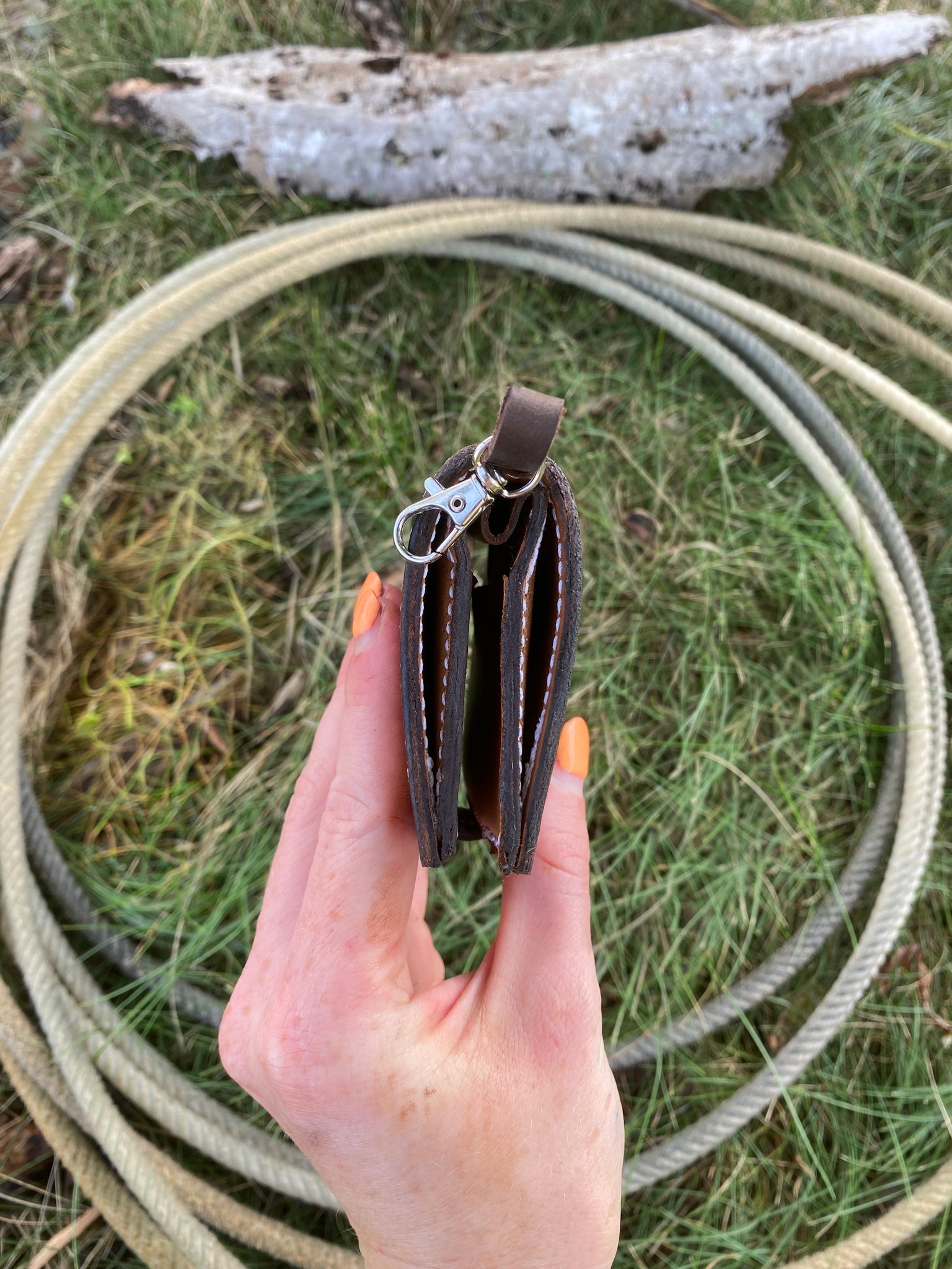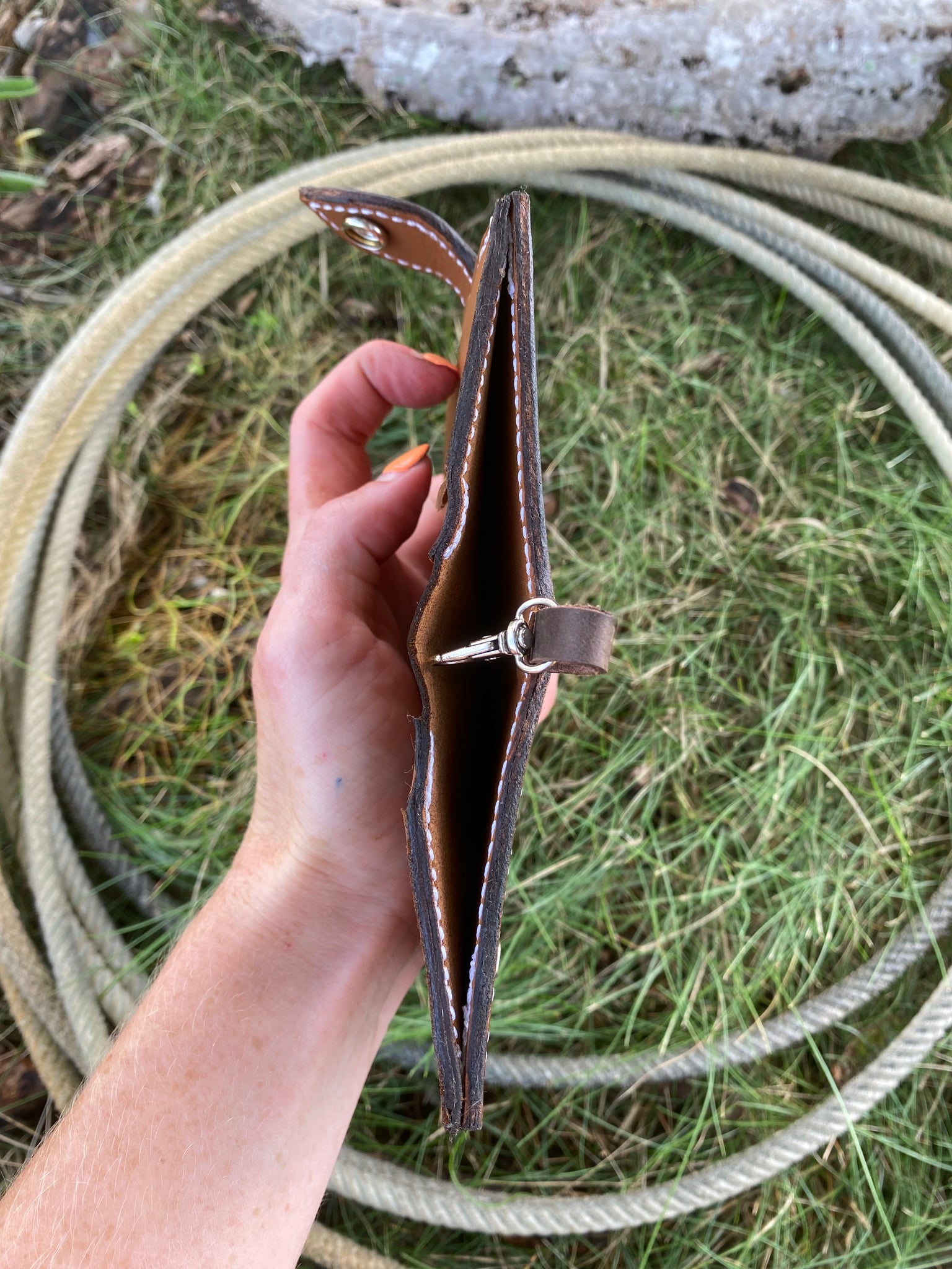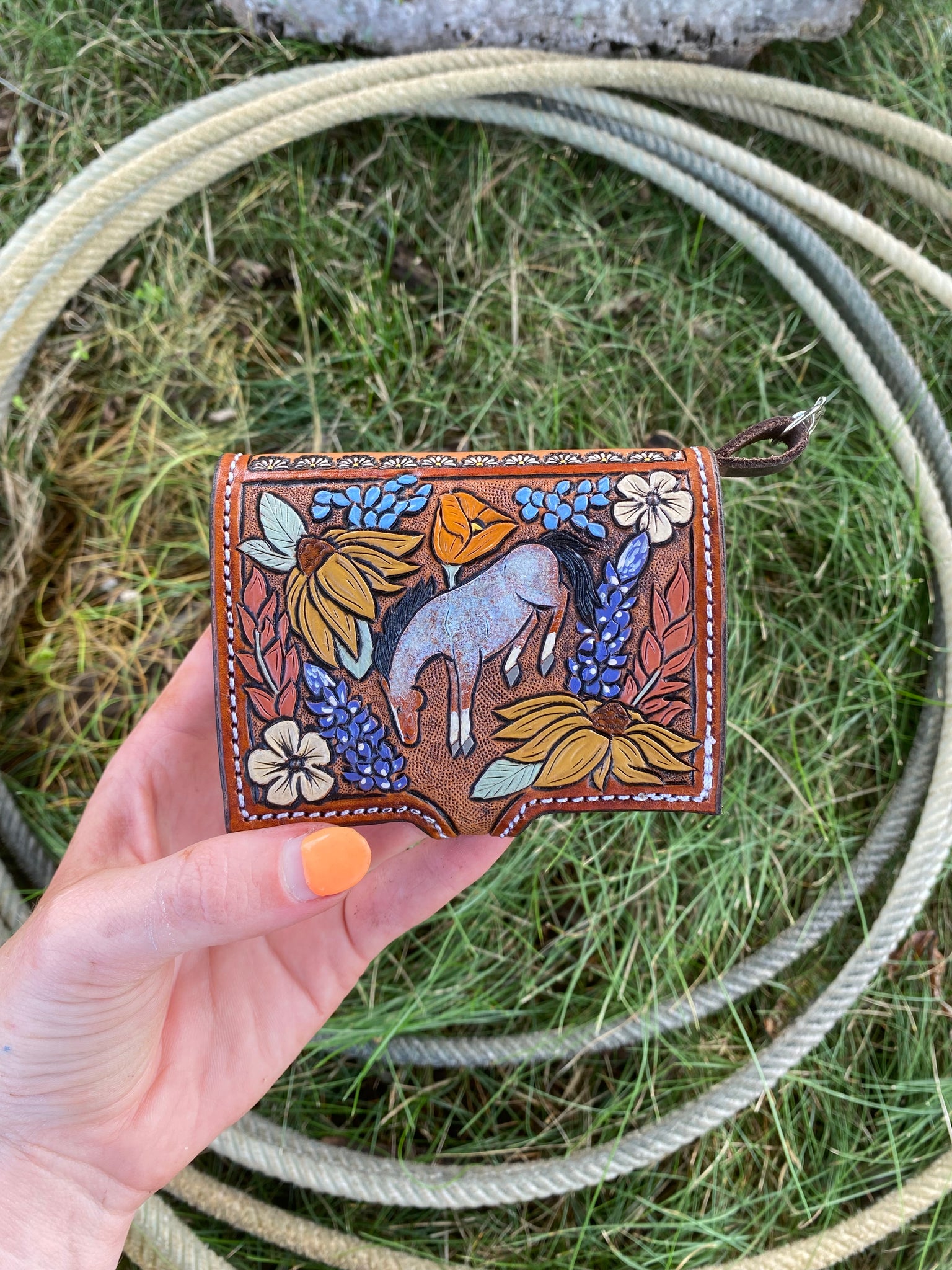 This is a DEPOSIT for a mini wallet. When you purchase this slot, send an email to mtnsidehide.customorders@gmail.com to discuss what you want and final price. Totals range from $300-$425 depending on details
